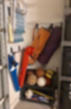 We also kept our lawn chairs in this same area as it is right next to where the trunk of my car is. This makes it easy to take the chairs outside or put into the car when going to sporting events. Because we had open wall space above the balls and other sporting items - we took advantage of that wall space to get everything off the ground.