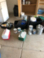 Items kept in the bins are things that we don't use often. For example: camping gear; snow clothes (it doesn't snow where we live); extra paint for touch ups (inside & outside); beach toys; emergency items; tools only used for special projects etc... We labeled the bins well which is a MUST (especially since we didn't use clear bins), and we kept similar bins in the same area on the shelves (for example ... all 5 or 6 bins holding camping gear are placed together on the shelves).